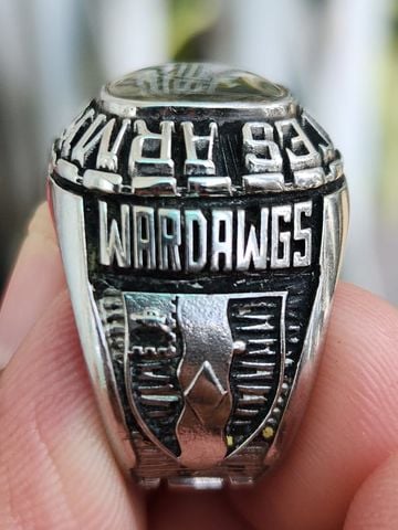 - bên hông trái nhẫn khắc họa logo chiến dịch Chiến Tranh Vùng Vịnh hiếm gặp còn nguyên vẹn. Phía trên khắc năm tham gia quân ngũ 1989 - 1990