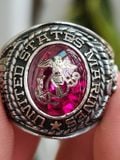 nhẫn mỹ xưa quân đội lính thủy đánh bộ marines jostens– Trên cùng là hột màu đỏ ruby với bề mặt bóng loáng chính giữa hột có khắc dát vàng logo Thủy Quân Lục Chiến xưa...