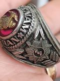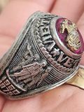 nhẫn mỹ xưa quân đội Vietnam veteran cc alphaTrên cùng là hột màu đỏ Ruby láng đẹp có gắn logo của quân đoàn Thủy Quân Lục Chiến mạ vàng 10k , bao quanh hột là dòng chữ...