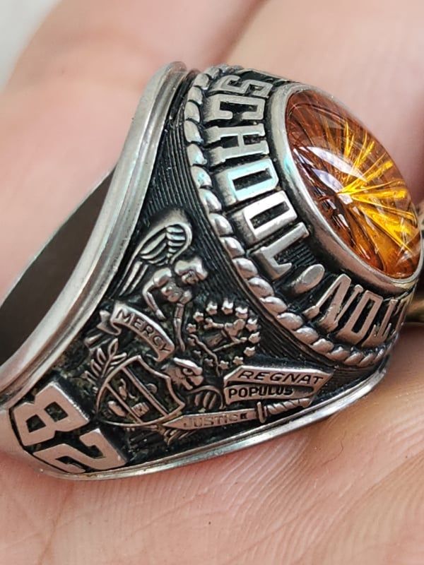 nhẫn mỹ xưa jostens ltm hột vàng tia- trên cùng là hột vàng hổ phách Amber với bề mặt láng đáy tia rực rỡ (hột này cực kỳ hiếm gặp, lên tay rất sang và...